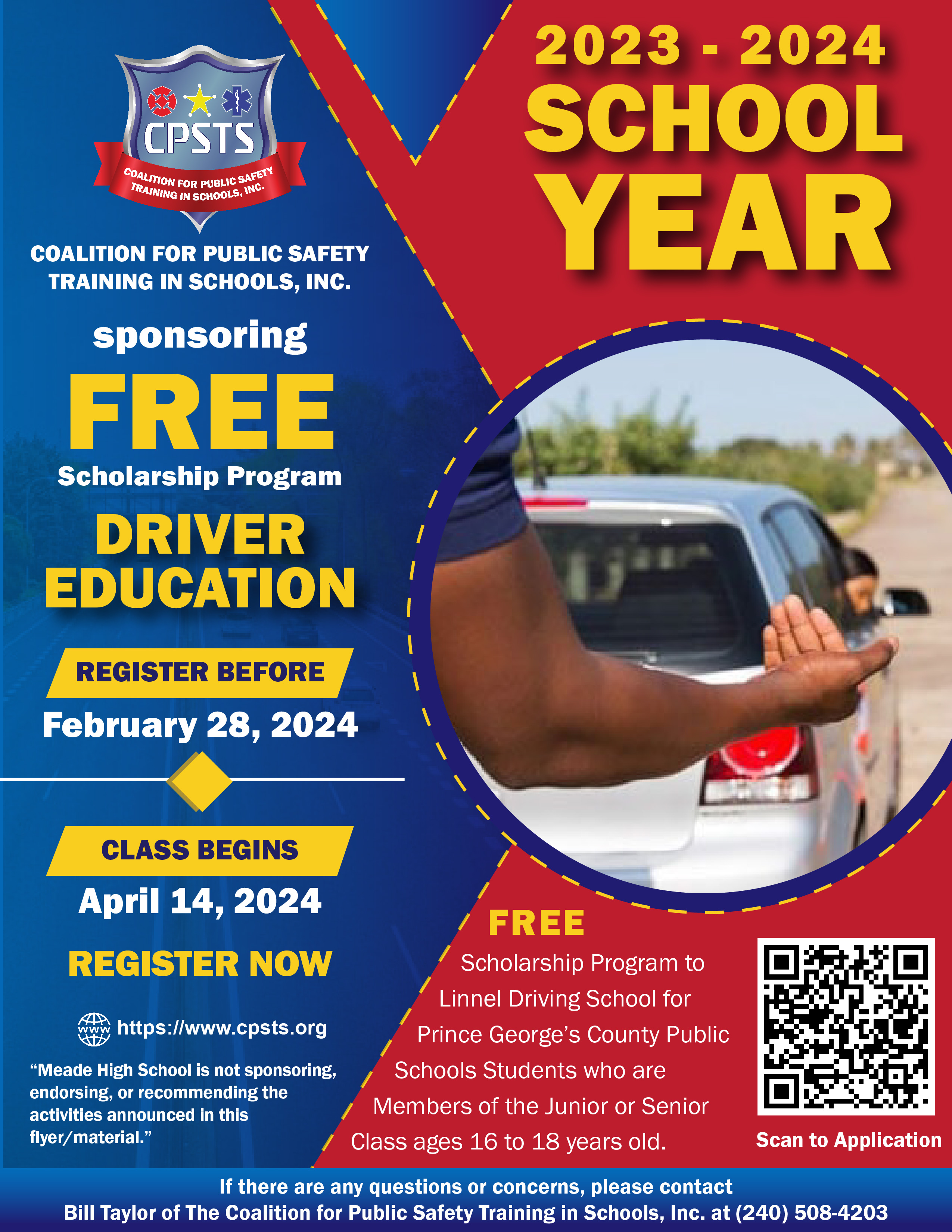 The Coalition for Public Safety Training in Schools, Inc. (CPSTS) is proud to offer parents/guardians and students this driver education scholarship opportunity.